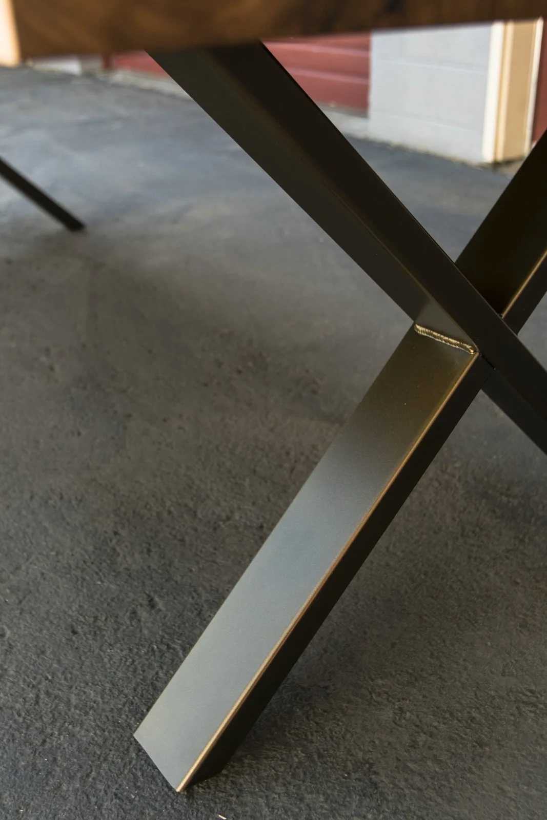 Already have a tabletop and looking for a base to pair with it? You’ve come to the right place! Our steel notched "X" legs in the example images are handmade from 1.5"x4" rectangular mild steel. Welds are blended and fine sanded for seamless joints, and finished with a durable powder-coat color of your choice.