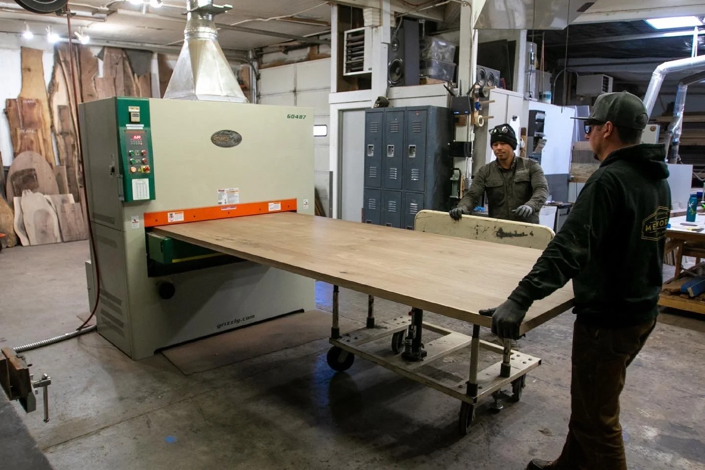 Our wide-belt sanding services are great for those who are in need of slab-flattening, or home projects such as sanding doors, trim, wood countertops, or refinishing furniture. The sander can accommodate pieces up to 50" wide pieces and our space will typically accommodate anything up to about 14ft in length.